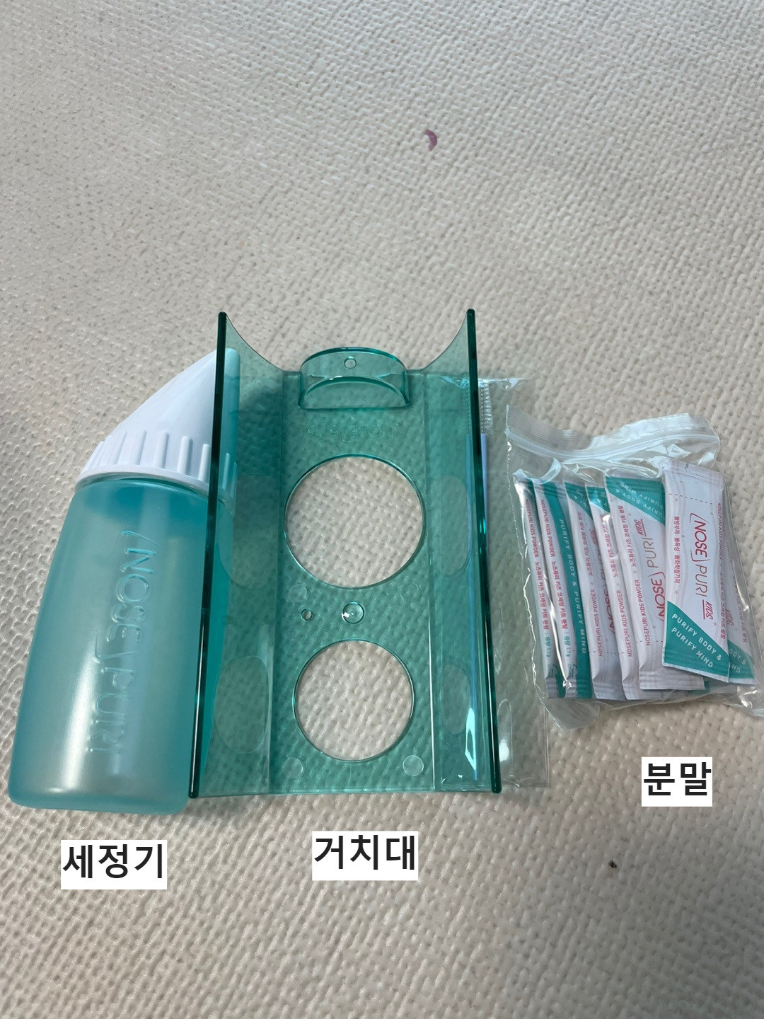 상품은 세정기,거치대,분말 이렇게 받았습니다.